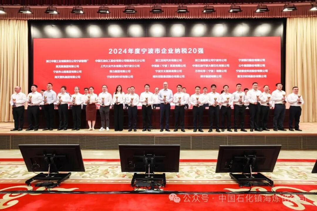 6月13日,宁波市推进科技创新和产业创新深度融合加快民营经济高质量发展大会暨“2025宁波创业创新风云榜”榜单发布活动举行,公司连续20年荣登“年度宁波市企业纳税20强”,公司代表、党委书记陈燕斌出席活动,代表镇海炼化领取宁波市纳税20强企业奖杯。